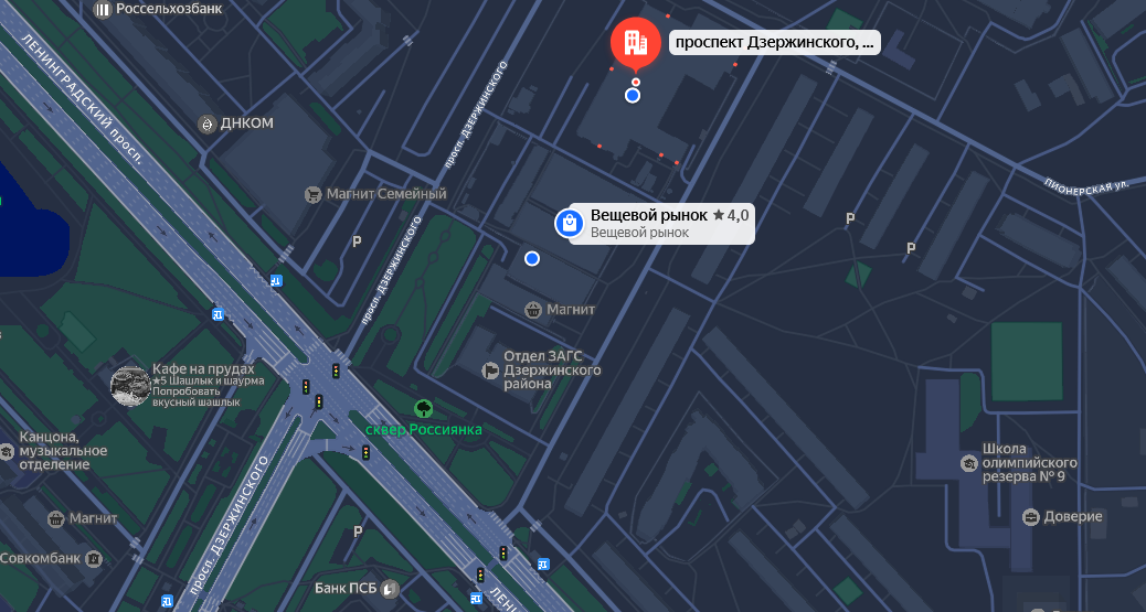 "Дзержинский Рынок", со стороны вещевого рынка, слева от входа